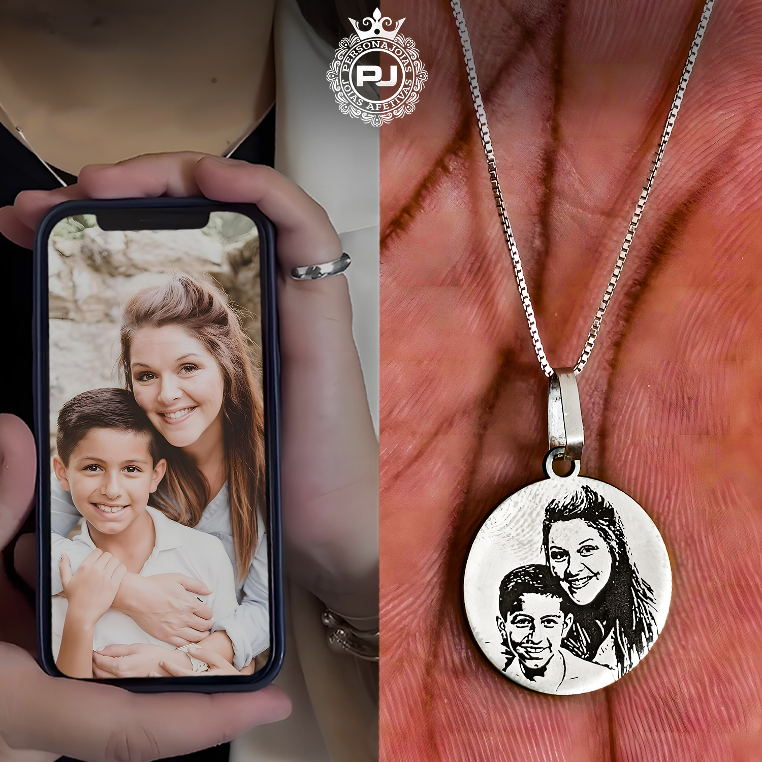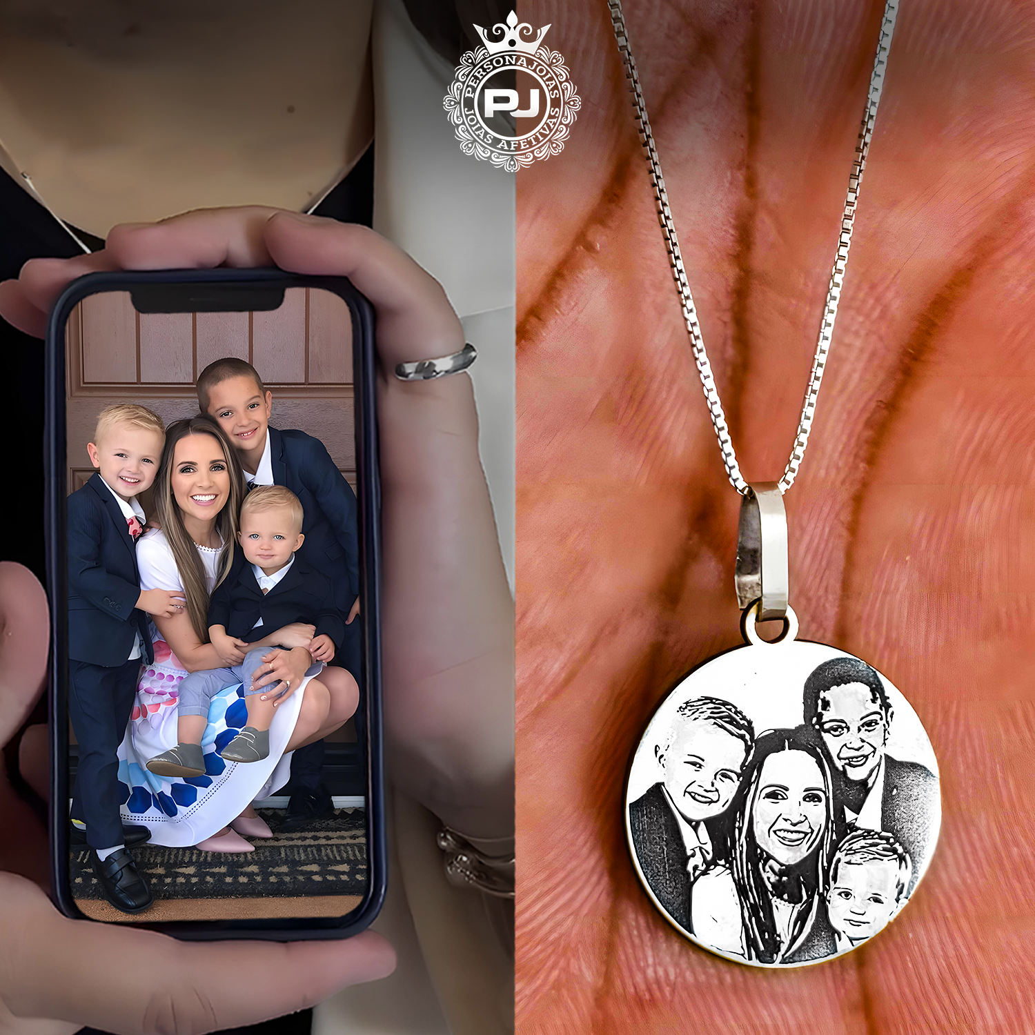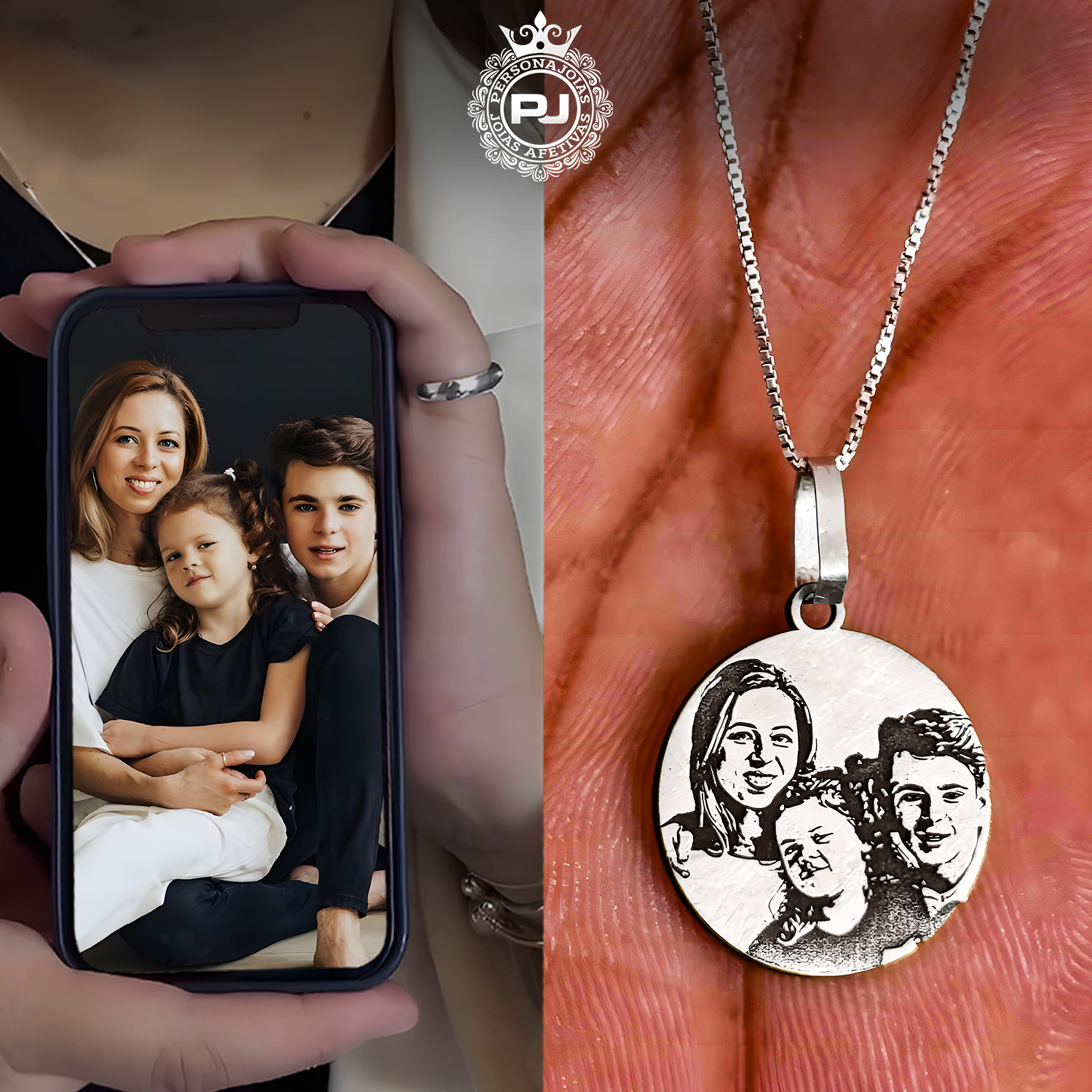 ▶️ Se você não tem uma foto com todas as pessoas que gostaria que estivessem na medalha, podemos fazer uma montagem juntando mais fotos.